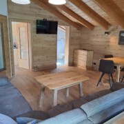 - Großes neu eingerichtetes Wohnzimmer mit Couch und Couchtisch, Esstisch mit Stühlen, Flachbild-Kabel-TV und Radio
