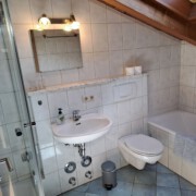 - Bad mit Wanne, WC, Duschkabine und Föhn