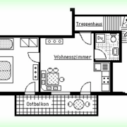 2- Zimmer-Wohnung im 1. Stock für 1-3 Personen 38 qm