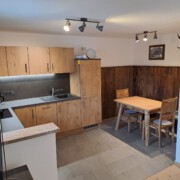- Küche, 4-Plattenherd mit Backofen, Kühlschrank, Spühlmaschine, Kaffemaschine, Wasserkocher und Toaster